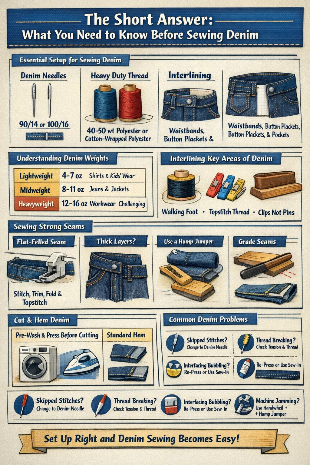 Pular a fase de configuração é o maior motivo pelo qual os projetos de jeans dão errado. Aqui está exatamente o que sua máquina e kit de ferramentas precisam antes do primeiro ponto.
