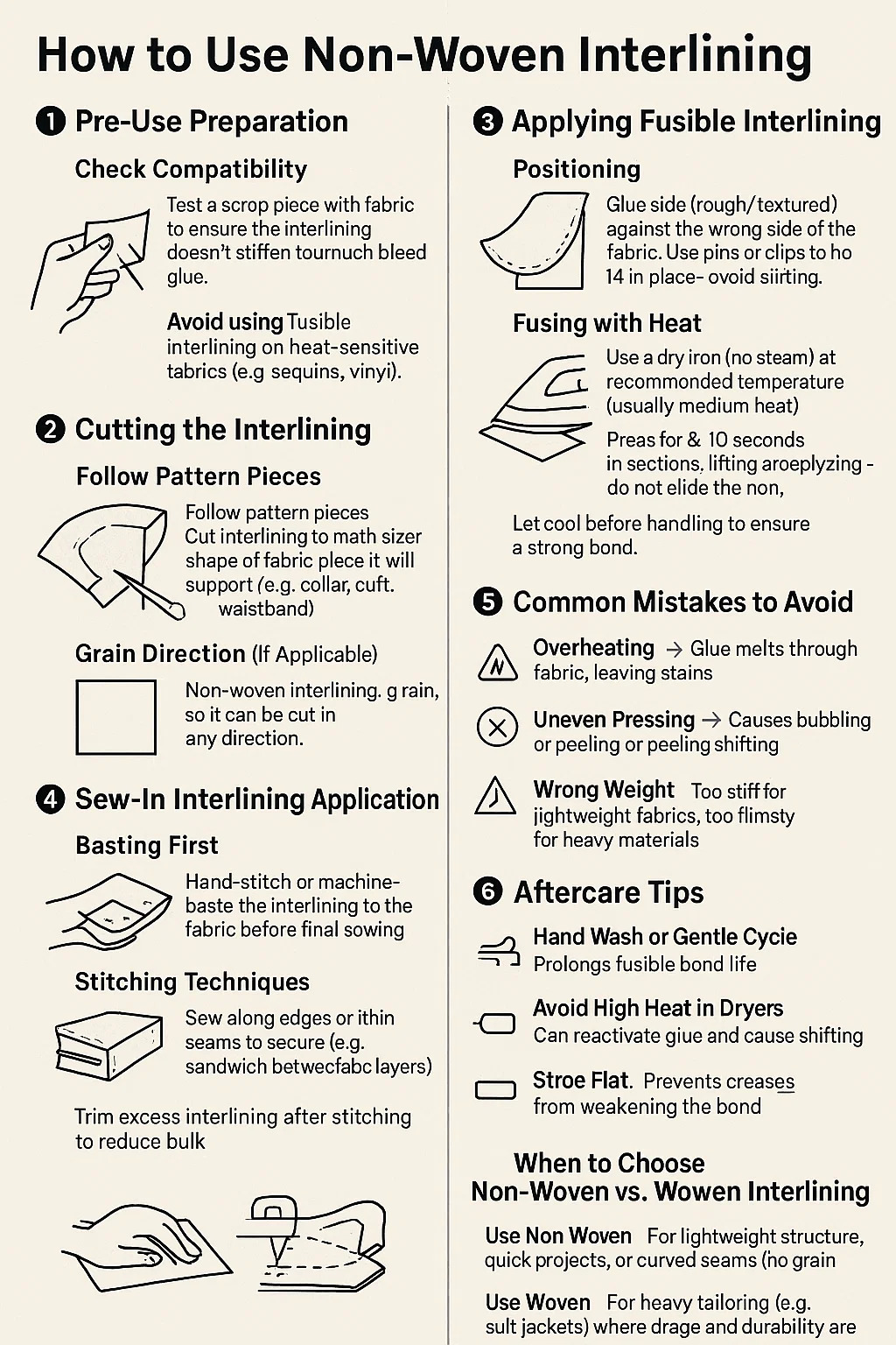 Use → não tecida para estrutura leve, projetos rápidos ou costuras curvas (sem restrições de grãos).